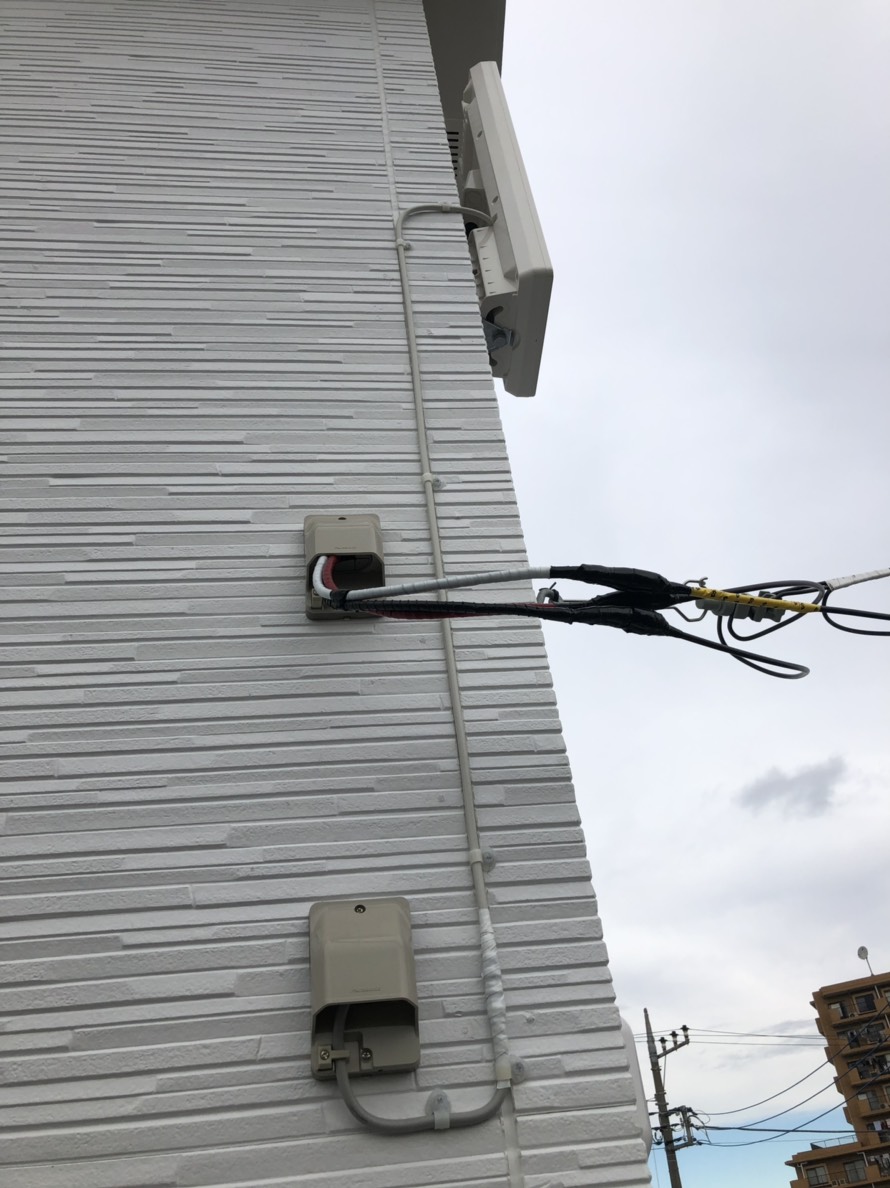 また引き込み口への配線も、電翔ではこのように丁寧かつ外観に配慮した工事を行っております😉