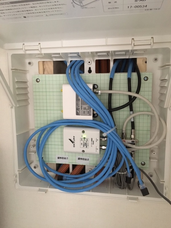 電波を増幅させるブースターと、電波を各お部屋に分ける分配器が設置されております。