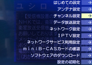 テレビで地デジ放送を見るために、お住まいの地域の放送局情報の取得作業(チャンネル設定・スキャン)が必要です。テレビの不調の際には、再度チャンネル設定をすると、症状が改善される場合もあります。また、地域(中継局)によって、各チャンネルの周波数帯の番号が違います。新しくTVを購入したり、他県や市外へ引越した場合もこの作業が必要です。