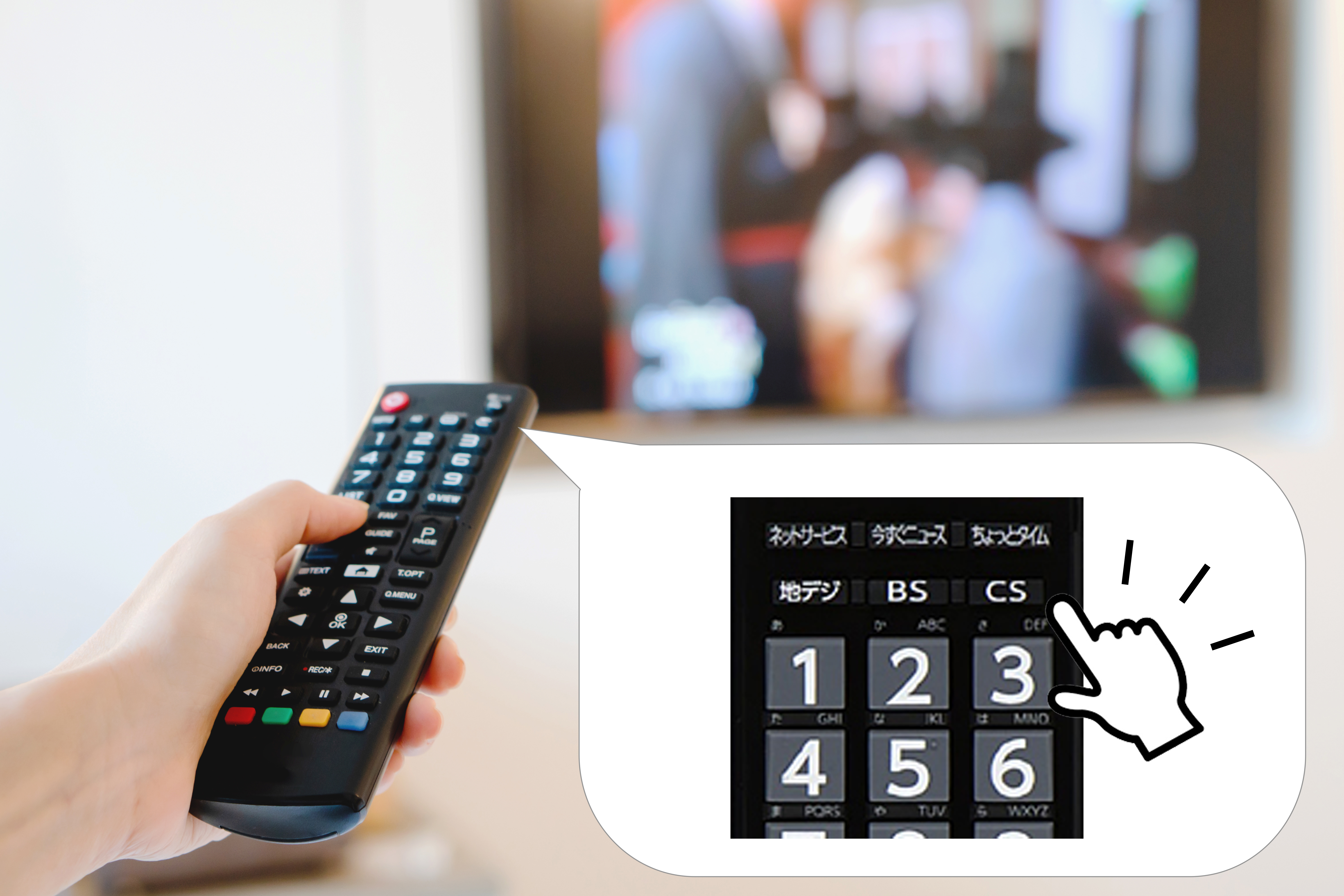 殆どのテレビリモコンには、【地デジ】【BS】【CS】といったようにボタンが並んでいます。見たいチャンネルが映らないのは、ボタンの押し忘れ・押し間違いかもしれません。※リモコンの種類によっては、表記が若干違う場合もございます。例)【BS/CS】など