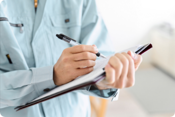 ご契約直後、または後日調整した日時にエアコン取り付け工事を実施します。取り付け前にお客様の大切な物件を工事で傷めたり汚したりしないよう養生を行い作業の開始です。途中、エアコンの風向きなどお客様のご希望をヒアリングしながら取り付け作業を進める場合もあります。 無事取り付けが完了しましたら、動作チェックおよび完了後のご説明、後片付け、料金のお支払を行い終了です。