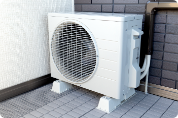 室外機は屋外に適切な場所に取り付けます。屋外での使用は防水性や防風性といった気象条件や通気性にも配慮しなければなりません。 主に、エアコン本体を取り付けた内壁を挟んだ裏側のベランダや庭を取り付け場所として選ぶケースが多いですが、物件によって天井や外壁など特殊な場所に取り付ける場合もあります。なお、取り付けた室外機には室内のエアコン本体から伸ばした配管を接続します。