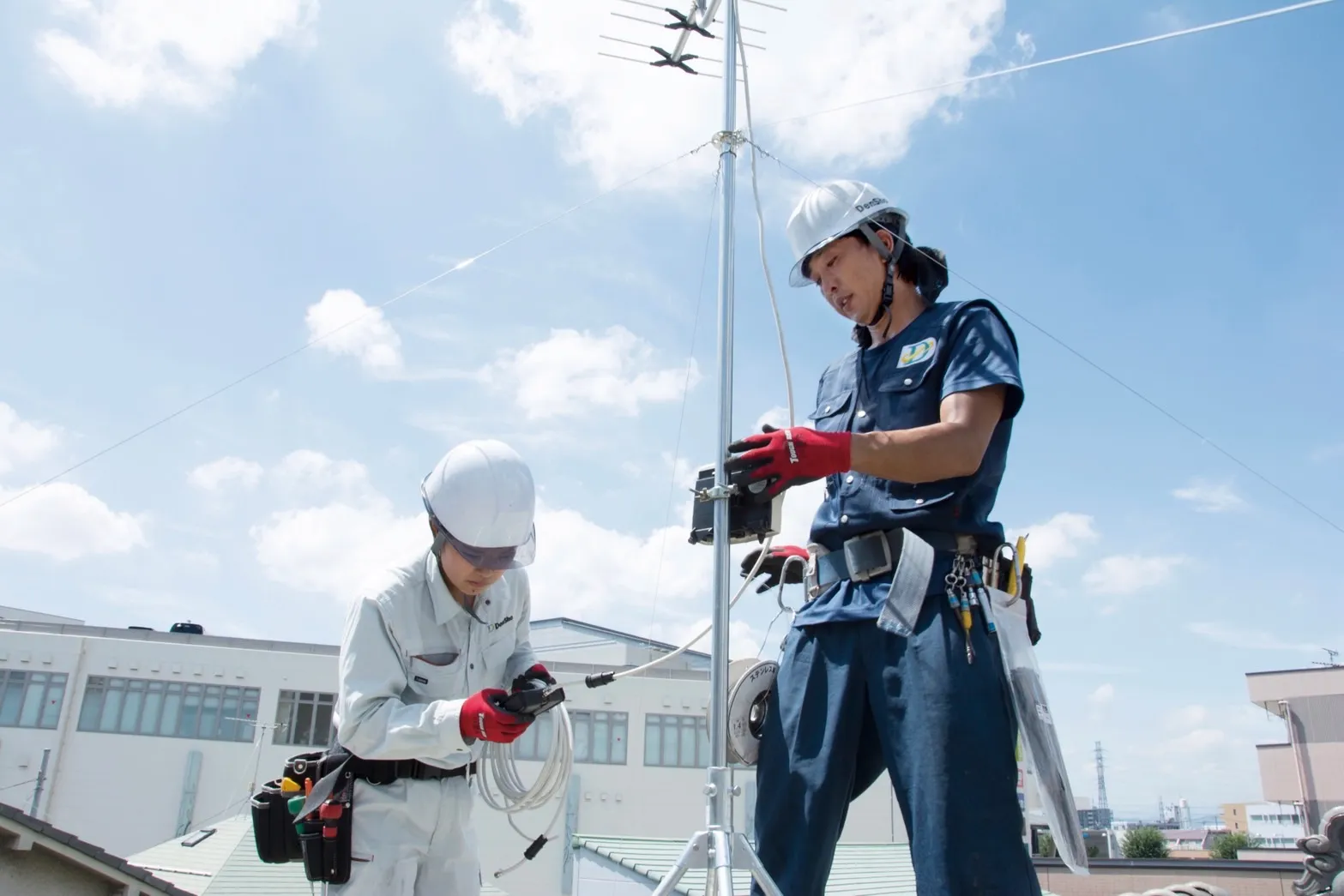 台風や積雪にも強いテレビアンテナ工事を徹底。他社で断られた難しい場所への地デジアンテナ設置も、自社技術スタッフが解決します。