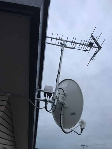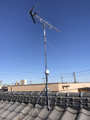 地デジアンテナの新設撤去例です。築20年のご物件には既存のアンテナがありましたが、視聴不良にお困りのため電翔にご依頼いただきました。老朽化のため、一式交換を行いました。