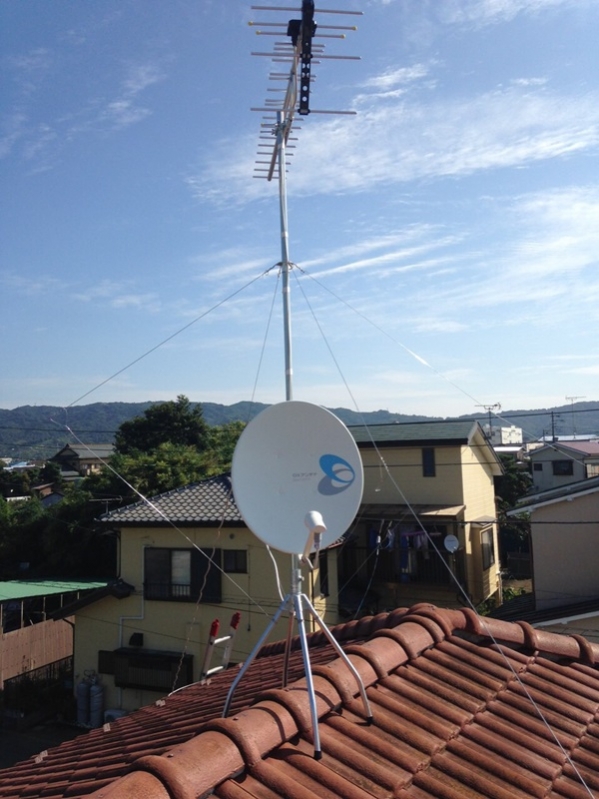ケーブルテレビからの切り替えで八木式アンテナとBS/CSアンテナを屋根上に設置しました。ランニングコスト不要のアンテナはケーブルテレビや光テレビよりもお得にテレビを見られるのでおすすめです。
