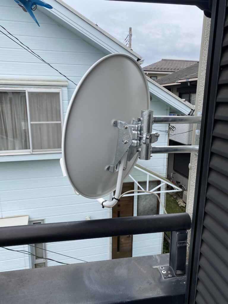 ベランダのBSアンテナが強風で金具が破損して落下してしまったため、新品のBS/CSアンテナに交換しました。電翔は新設だけでく撤去やメンテナンスなど幅広いアンテナ工事に対応しています。