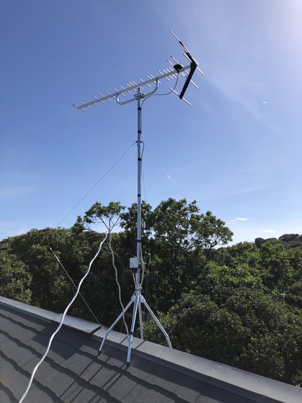 入居後、テレビが見られないことに気づき慌てて電翔をご利用くださいました。高台の位置するお住まいで屋根上に八木式アンテナを設置したことでスカイツリーから感度良く地デジ電波を受信しています。