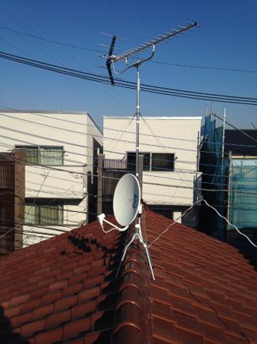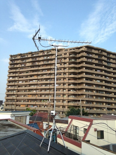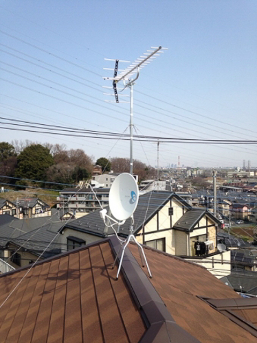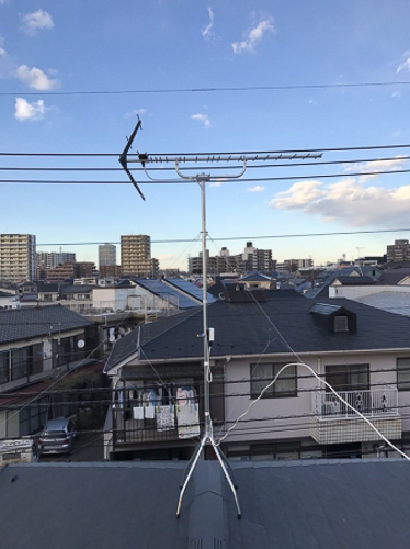 埼玉県朝霞市のテレビアンテナ工事の施工例です。埼玉県朝霞市のテレビアンテナ工事の施工例です。朝霞市では地デジ用としてUHFアンテナをはじめデザインアンテナなど様々なアンテナの設置工事を行っています。映像ライフの幅を広げるため4K8K放送対応のBS/CSアンテナ設置も注目されています。アンテナの新設・増設の他、取替、移設、撤去など埼玉県で施工実績豊富な株式会社電翔へぜひお任せください。格安価格でアンテナ設置工事をご提案させていただきます。