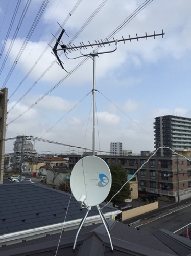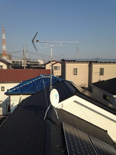 埼玉県川口のテレビアンテナ工事の施工例です。川口市はUHFアンテナの給電部のみの設置で受信可能なエリアがあるくらい電波の良好さが伺えます。戸建住宅はもちろん集合住宅やビル店舗へのアンテナ工事も埼玉県で施工実績豊富な株式会社電翔へぜひお任せください。格安価格でアンテナ設置工事をご提案させていただきます。