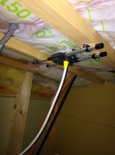 電翔は新築住宅でのテレビ視聴ご希望のお客様からのご依頼を数多くいただいております。 写真は地デジ用第3世代として登場したユニコーンアンテナです。従来の八木式アンテナやデザインアンテナの使用はもちろん、新4K8K放送などの衛星放送視聴のためのBS/CSアンテナとセットなどご希望のプランに応じて設置可能。 川口市のテレビ電波受信環境を考慮して新築住宅の快適なテレビライフを実現いたします。