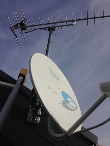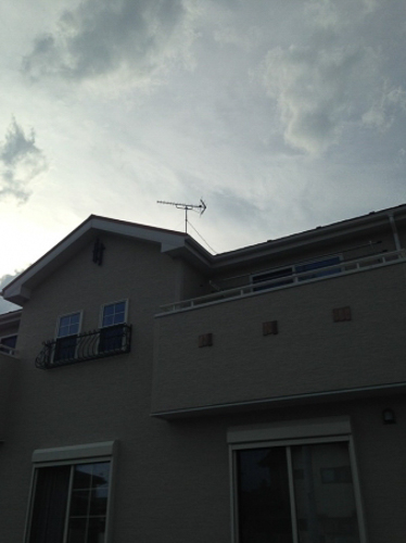 電翔の工事実績が多いカクニシビルダー様物件へのアンテナ工事です。八木式アンテナとBS/CSアンテナを設置しました。衛星アンテナは地デジと同時工事で特別価格に。