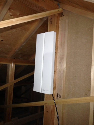 屋根裏に地デジ用デザインアンテナを設置しました。強電界エリアで地デジ電波が屋内まで十分届いているため、実現した設置方法です。設置のご相談は電翔にお任せください。