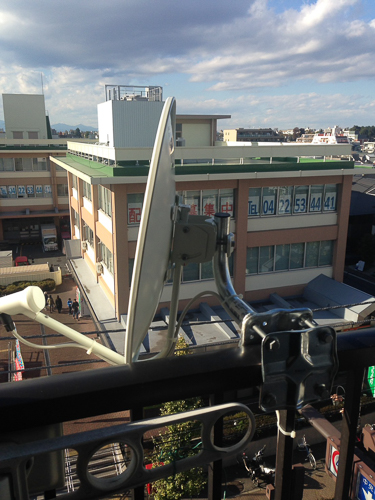 地デジのみ対応の集合住宅では、別途BS/CSアンテナを増設することで衛星放送の視聴が実現します。この施工例ではマンションのベランダの手すりに設置して視聴を実現しました。