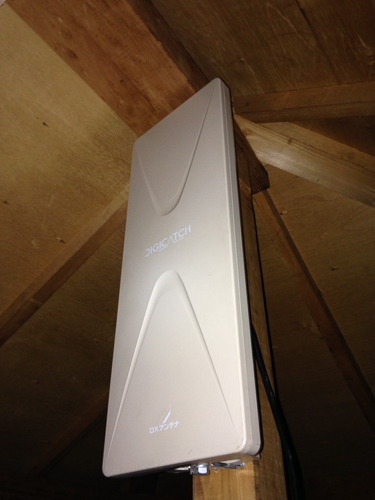富士町のように強電界地域では、建物内で地デジ電波受信できる場合があります。この施工例では、屋根裏設置が実現。デザインアンテナを使用してテレビ視聴を実現しました。