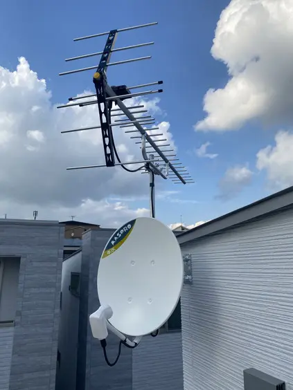 また、地デジ以外では衛星放送の需要も高く、大田区では新4K8K放送対応のBS/CSアンテナの設置依頼も多いです。ただし、建物や樹木によって電波が遮蔽されてしまうケースもあるため、電翔では大田区の各家庭の環境に最適な施工で衛星放送の視聴も多々実現しています。