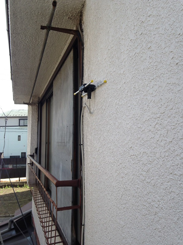 外壁に八木式アンテナ輻射器(給電部)のみを設置して、地デジ放送の視聴環境を整えました。地デジ電波の受信環境が良い墨田区ではアンテナのパーツのみの設置でも受信も可能です。