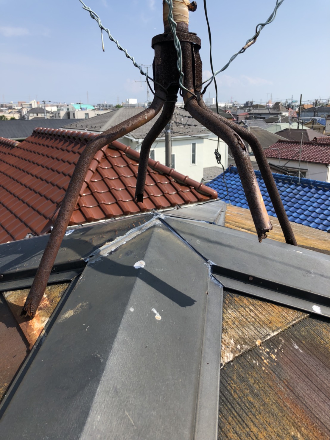 →アンテナ内に水が入っている確認が高く、流れ出た水を踏んでしまうと転んで、屋根上から落下してしまう危険があるため⚡