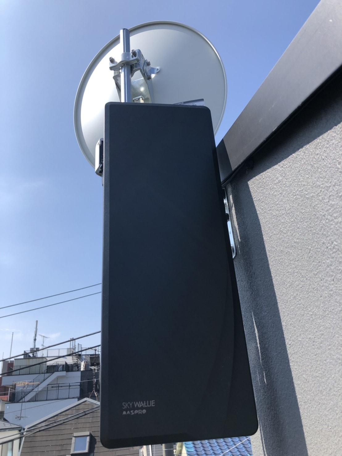 デザインアンテナは、壁面への取り付けになるため、3階建てでも電波が受信できれば、短い2連梯子での取り付けが可能です🙆✨