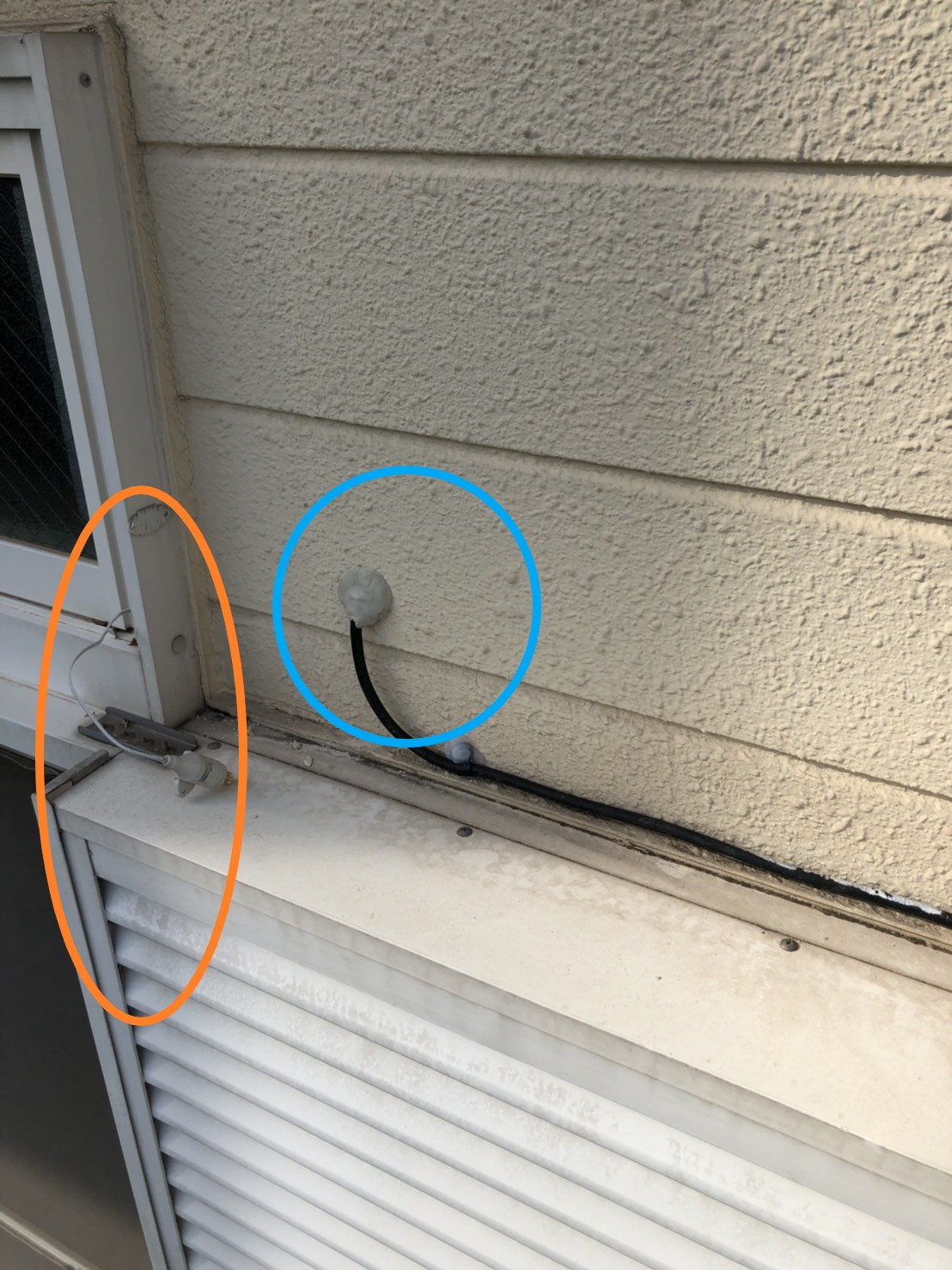 また、BS/CSアンテナも設置されていて、BS/CSアンテナからの配線を窓の隙間を隙間ケーブルを使用し通し、テレビまで繋げてご視聴されていたため、配線があることで窓が完全に閉まらない!という状況でした💦
