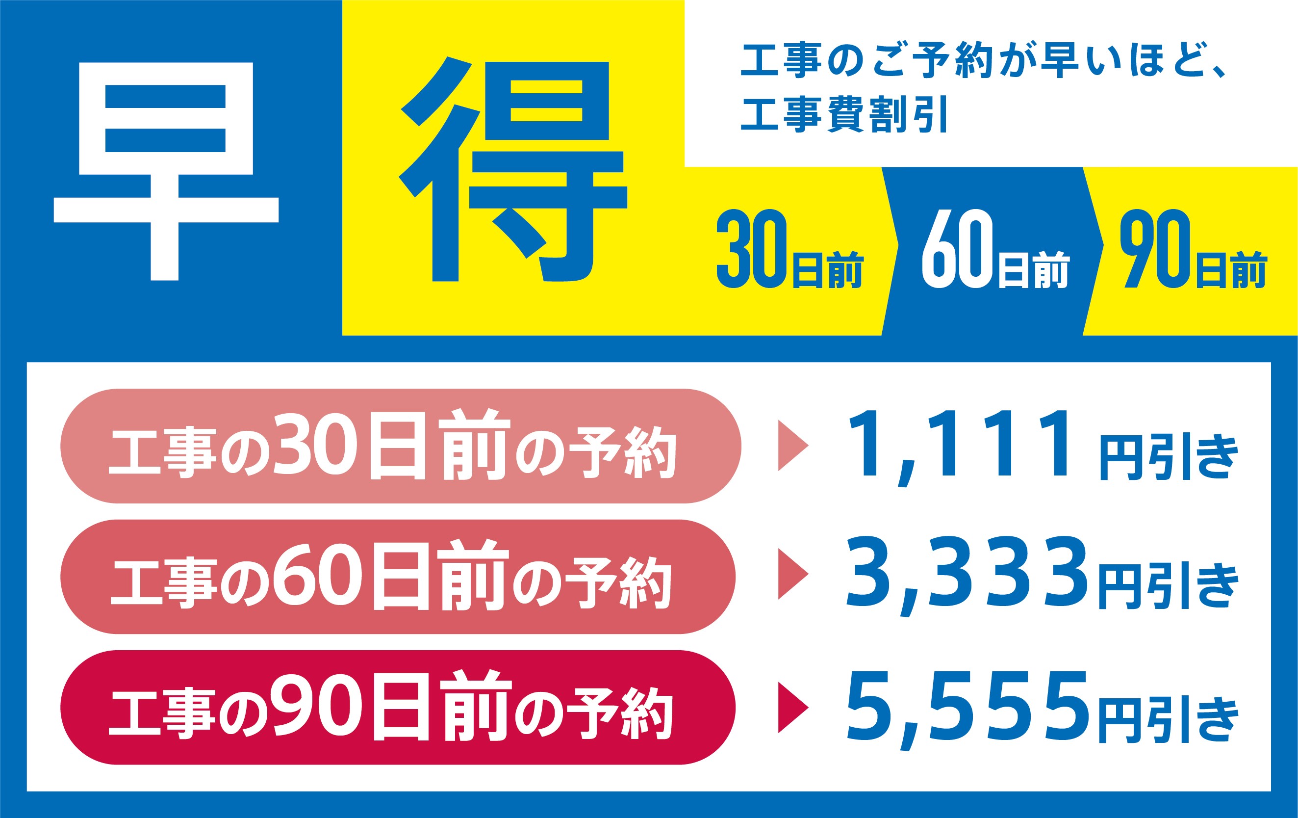 \ご予約からご訪問日までが長ければ長いほどお得になるキャンペーン/
