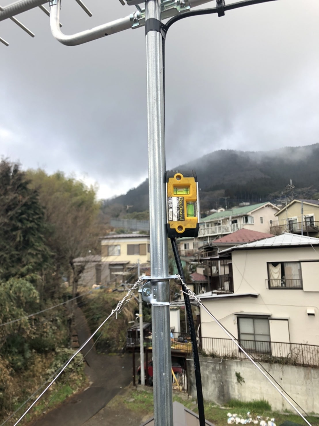 20素子の八木式アンテナを切妻屋根へ屋根馬と支線を用いて取り付けました💁