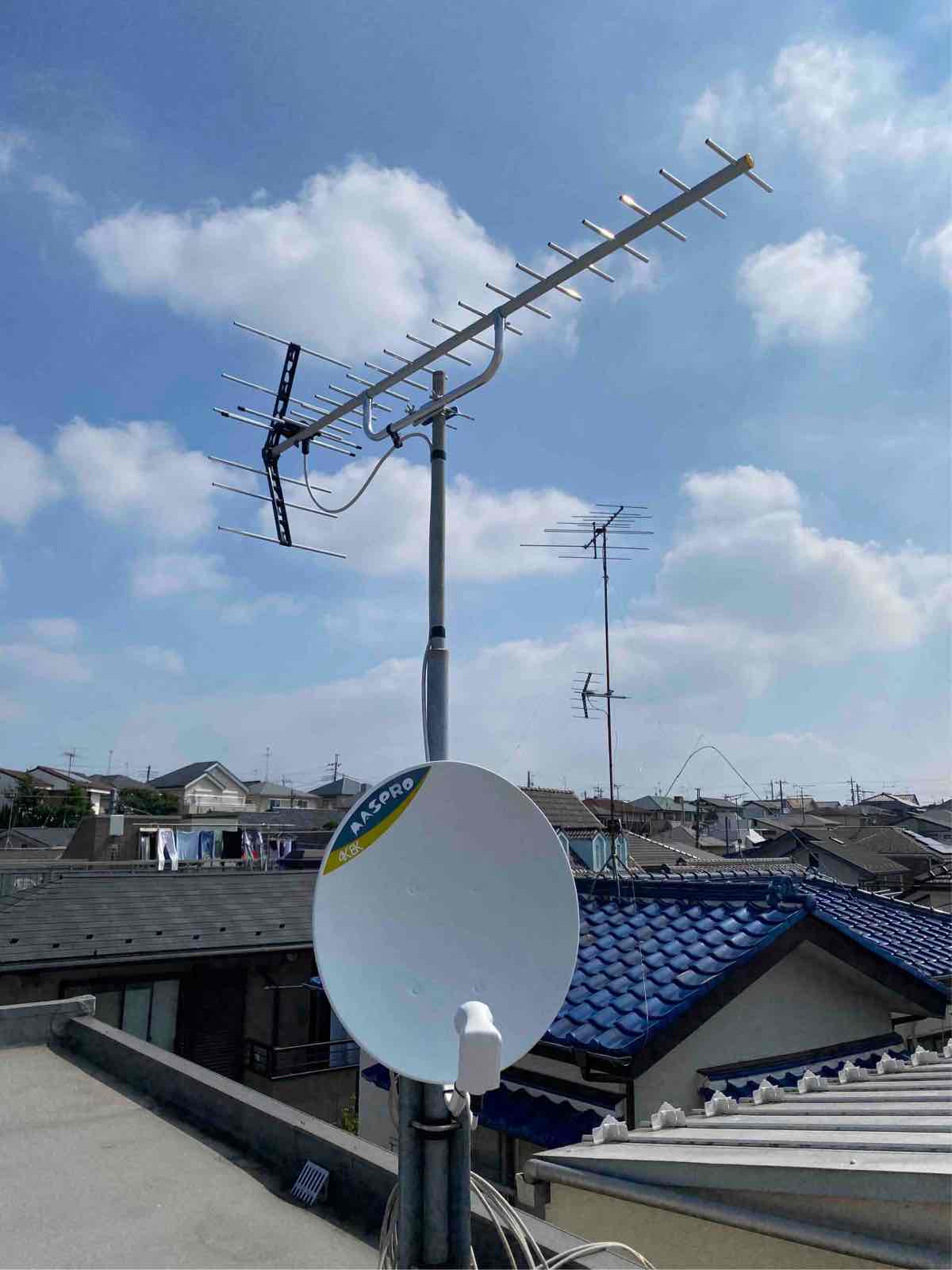 UHFアンテナとこの機会に4K8K放送にも対応している衛星放送用のパラボラアンテナもセットで同じ場所へ設置いたしました👨‍🔧