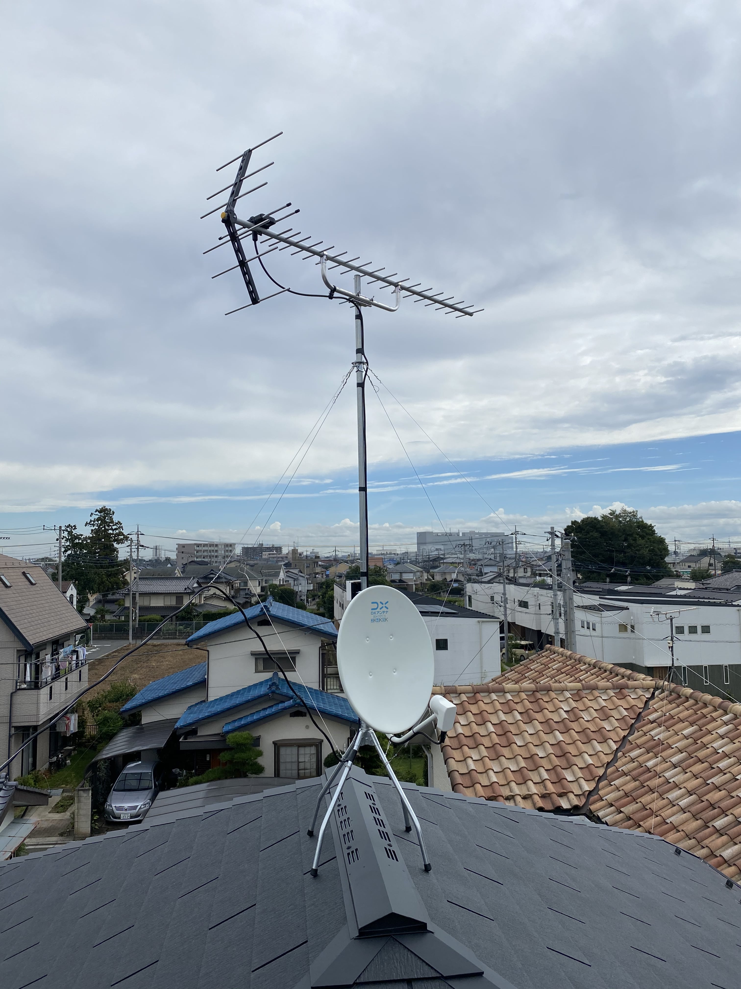 地デジには欠かせない骨組みのUHFアンテナと円盤型のBS/CSアンテナが設置させていただきました!