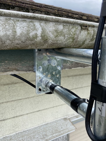 破風板の強度や電波状況を考慮して、屋根上設置をおすすめしましたが、お客様の強いご希望により、再度、破風板にサイドベースを使用して取り付けることとなりました。