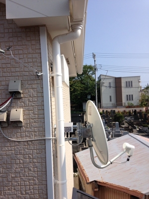 今回は、家の2階部分に白のデザインアンテナとBS/CSアンテナを設置しています。