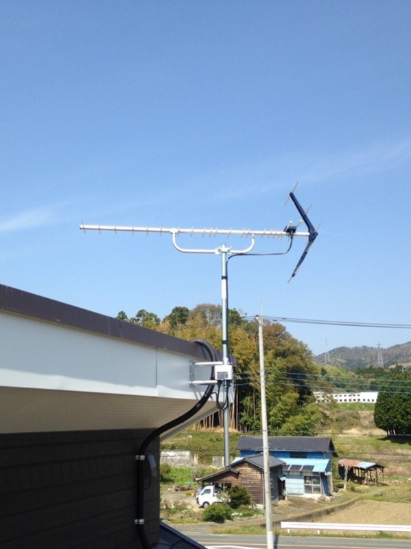 破風と呼ばれる部分に、地デジの八木式アンテナを設置させていただきました。