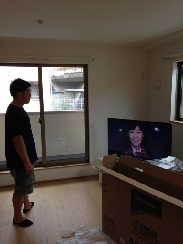 新品の大きなテレビでございますが、こちらの設置と設定のサービスもさせていただきました!