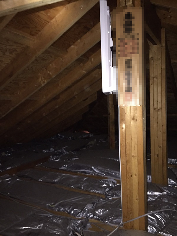 屋根裏は、屋外設置に比べて風雨の影響を受けにくいという利点がございます🙂