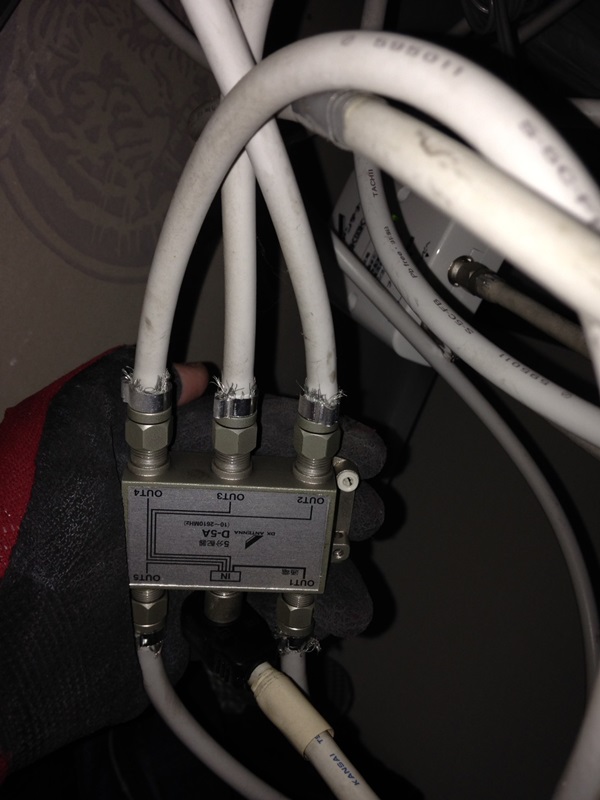 S様宅では5分配器を使っておりますが、これはお家のテレビ端子の数によって変わってきます。