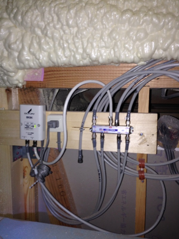 こちらは、屋内に設置されたブースターの電源部と、分配器です。