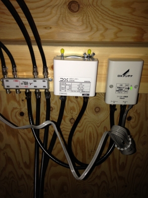 2枚目のお写真は、右から『ブースター電源部』・電波を増幅させる機械『ブースター本体』・各お部屋に電波を分ける機械『分配器』です!