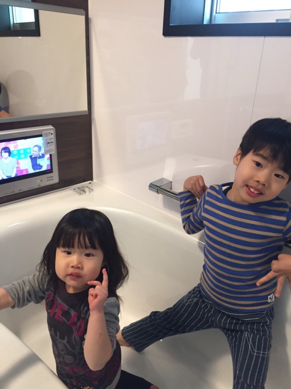 最後に、K様の元気いっぱいのお子様のお写真です!お風呂場のTVもしっかりと映っていますね♪