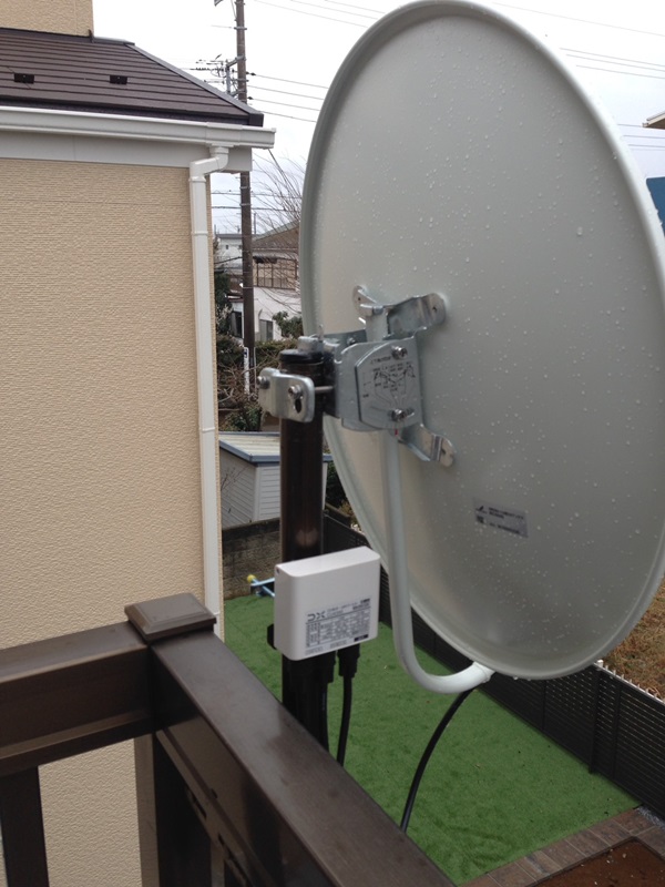 N様のお宅には、屋根上に地デジのUHFアンテナ、ベランダにBS/CSアンテナがついています。