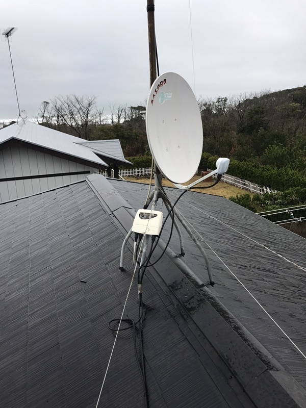 現場に伺うと、平屋のお家の屋根には1本のマストに3種類のアンテナがついていました🍀