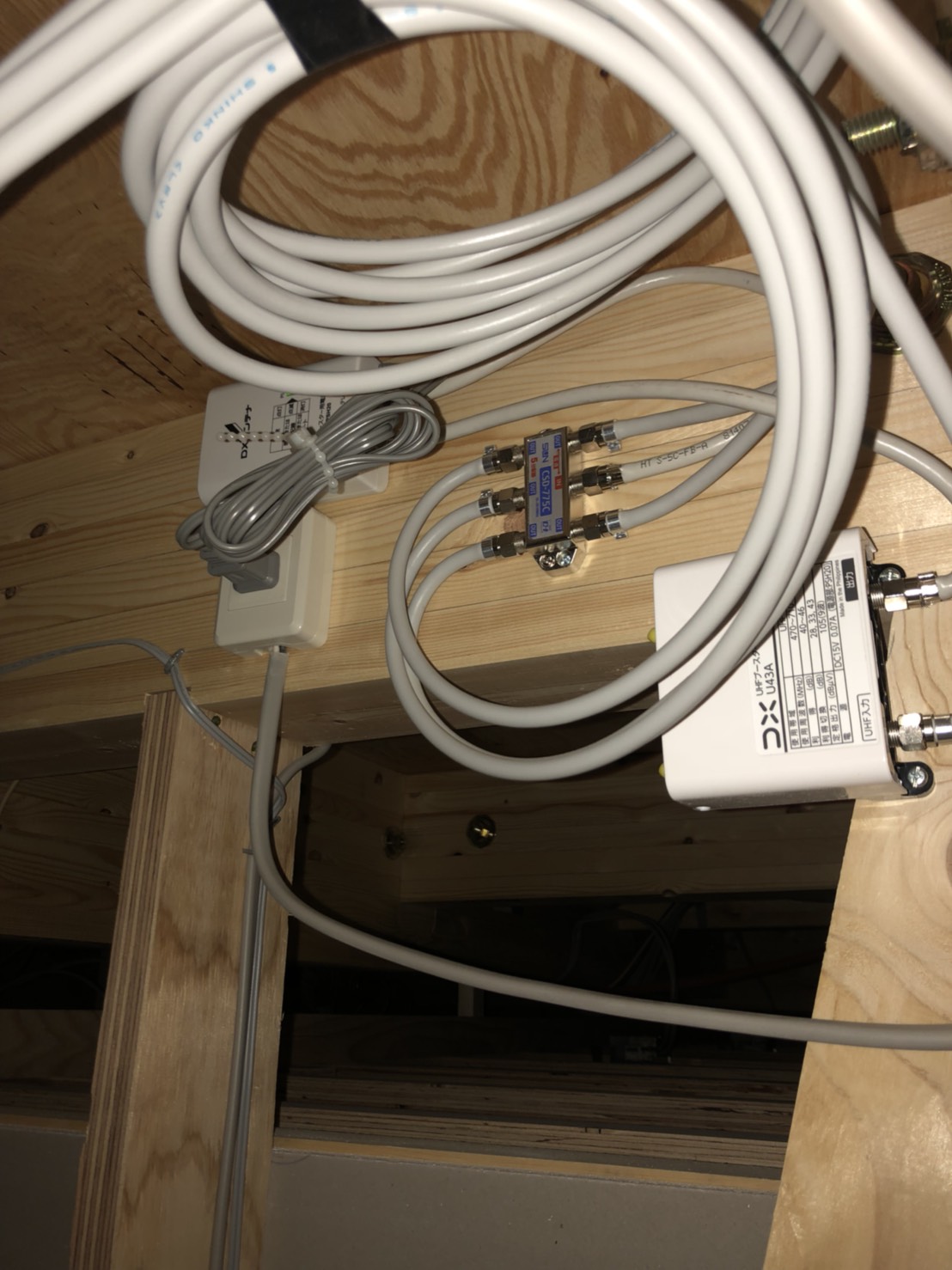 真ん中の枝分かれしているのは、各お部屋へ電波を分けている分配器🏡
