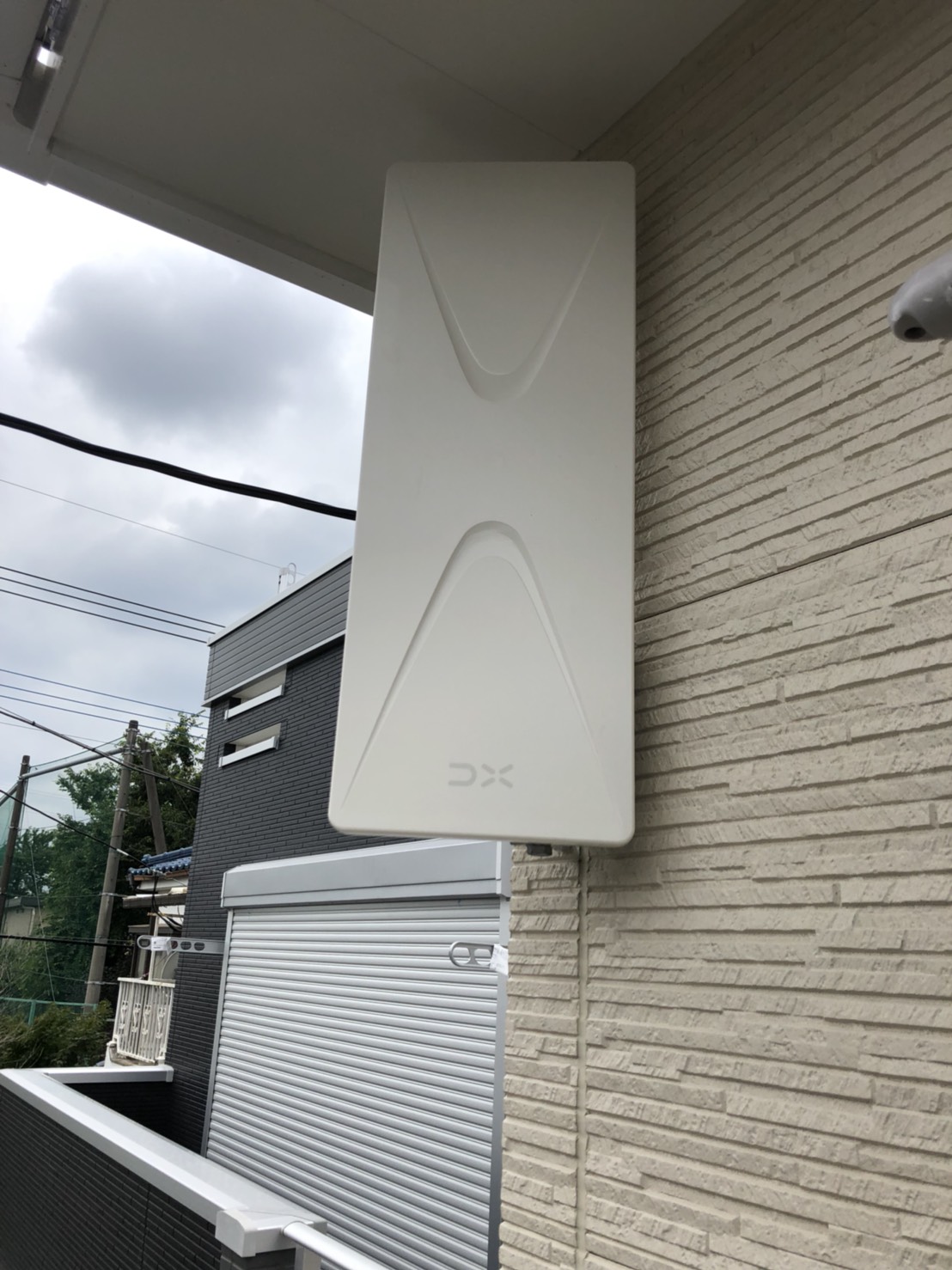 無事に電波の受信も可能だった為、2階のベランダのワキへデザインアンテナ(フラットアンテナ)の取り付けいたしました🙋💓
