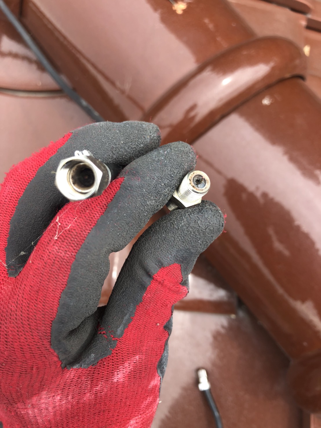 上のお写真、アンテナから出ている配線と、お家から出ている配線を繋ぐ、『同軸コネクタ』や『JJ』や『中継用アダプタ』などと呼ばれる部分なのですが、