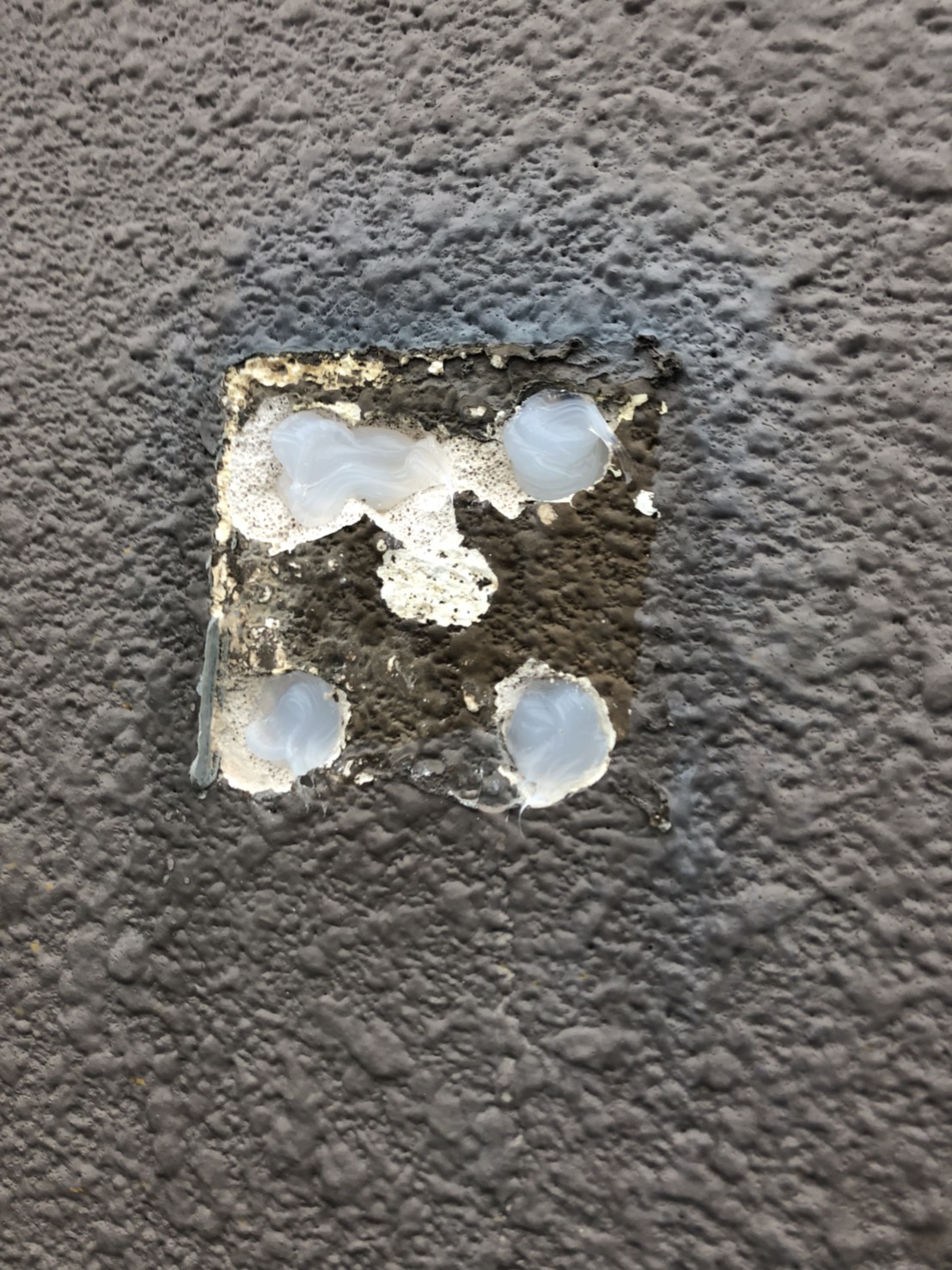 また、元々アンテナが設置されていた壁面には、金具が止められていた穴が開いたままになってしまっていたので、電翔では、コーキング剤を使用し、穴埋めをさせていただきました💪🔧