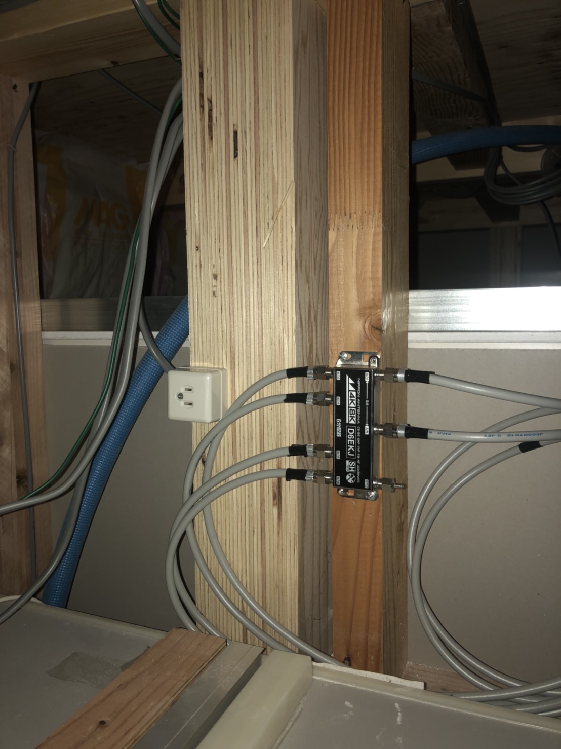 🏡D様邸では、既に4K8k対応の分配器・テレビ端子が取り付けられていたため、