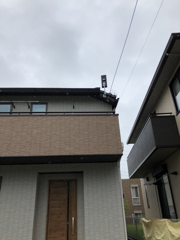設置場所は、こちら ↑ 2階屋根の破風板部分です。