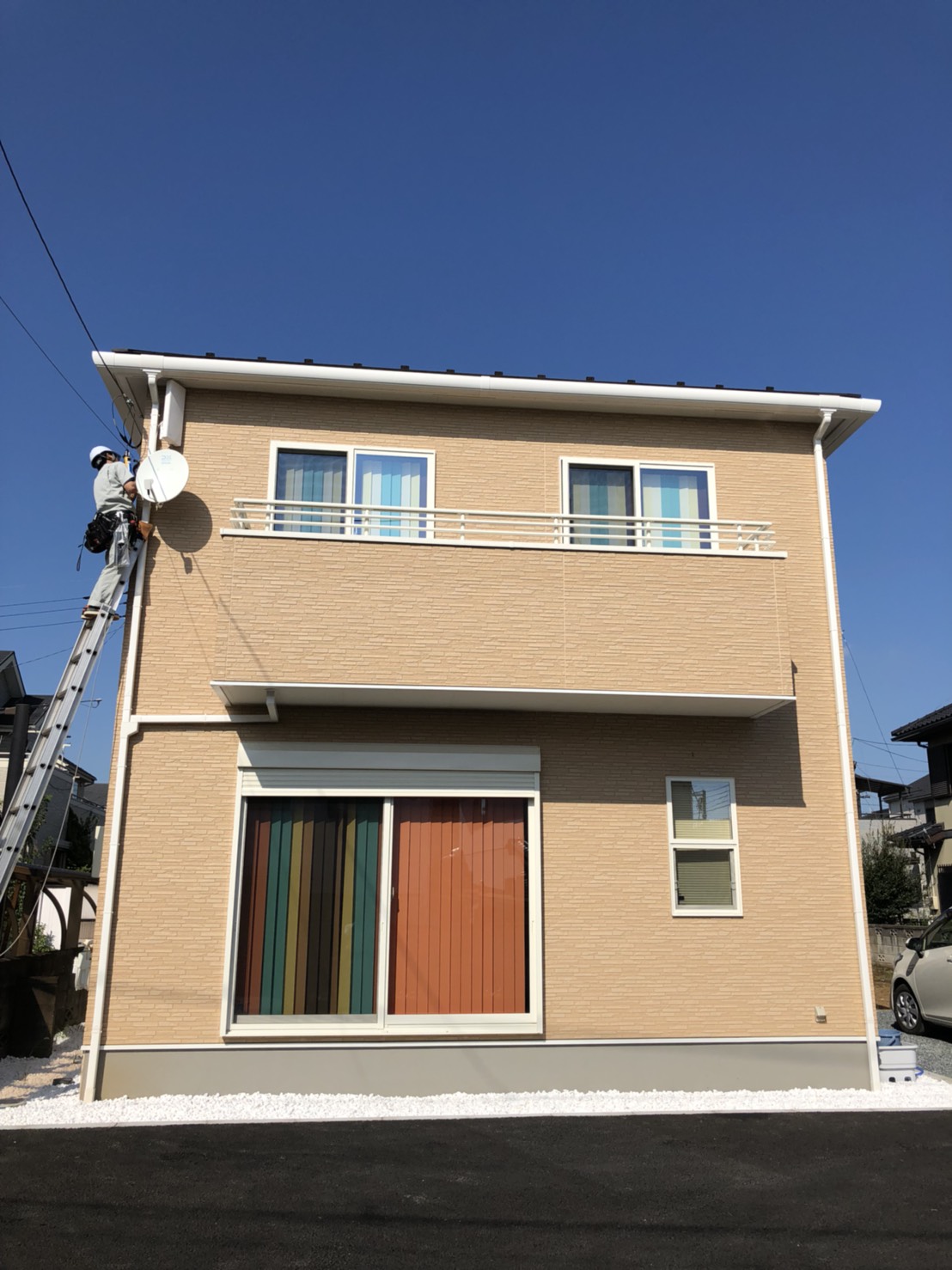 スタイリッシュな見た目で、特にご新築の方に大人気の地デジアンテナのデザインアンテナと衛星放送を受信することができるBS/CSアンテナ(4K8K対応)をお取り付けいたしました🐻💕