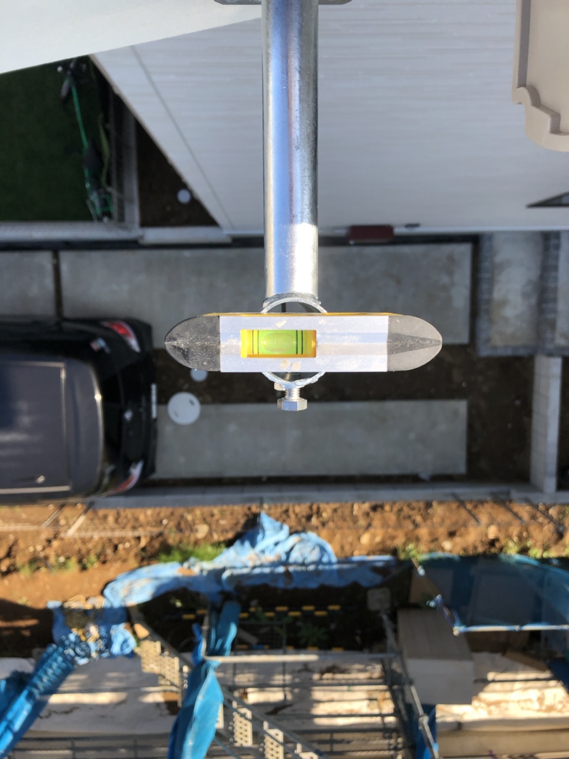 きちんと直立させるためには、水平器(写真右)でのチェックも欠かせません👨🔧✨