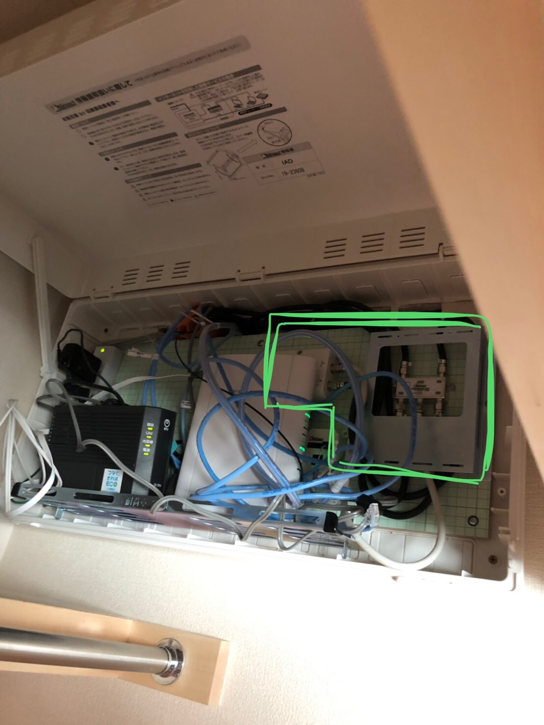 左は収納スペースにあった、マルチメディアボックス(無線LANなどが入っています)