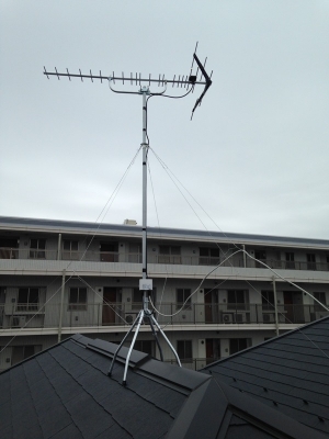 設置のアンテナが写真左上、屋根の上に写りこんでおりますが、