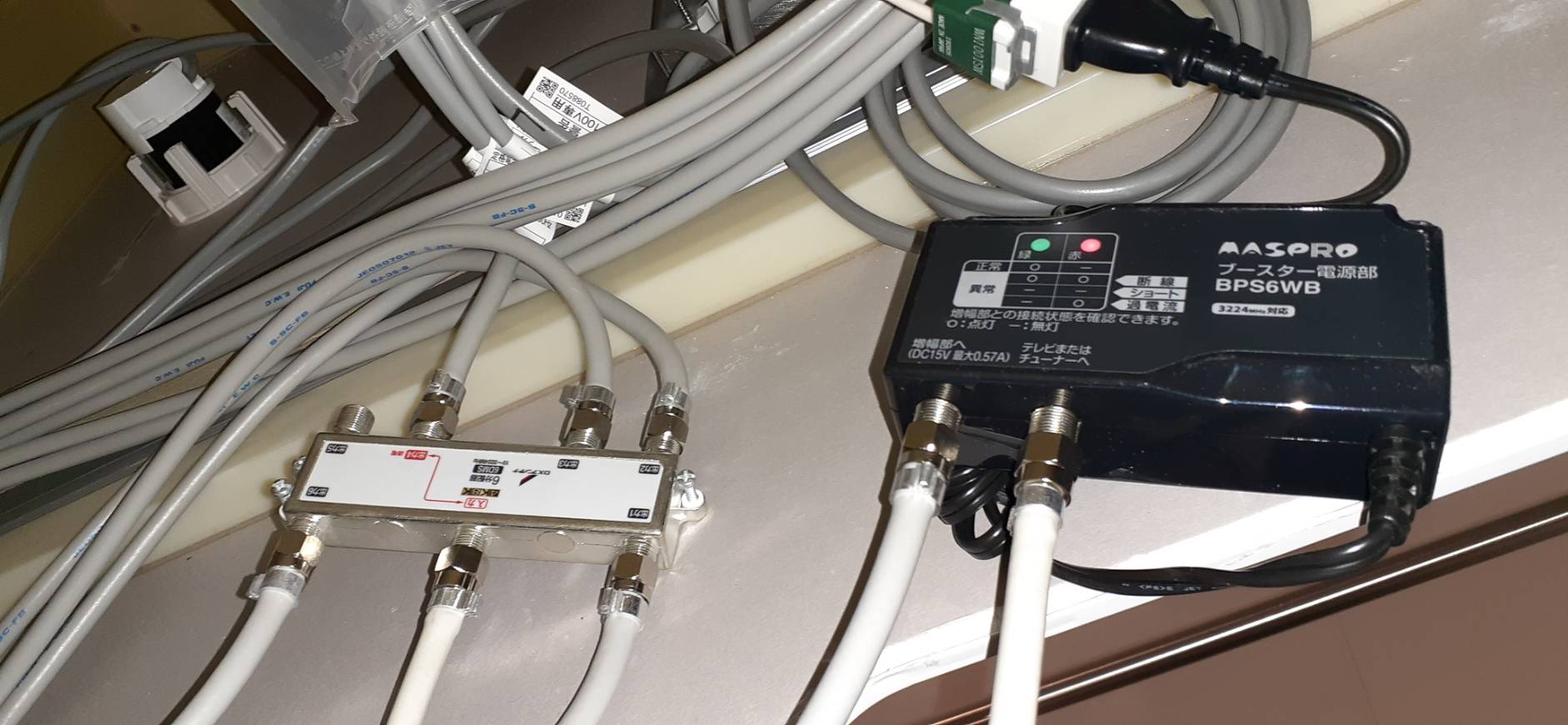 ケーブルが多々繋がっており、電波をお部屋に分配する役目をしています⛓