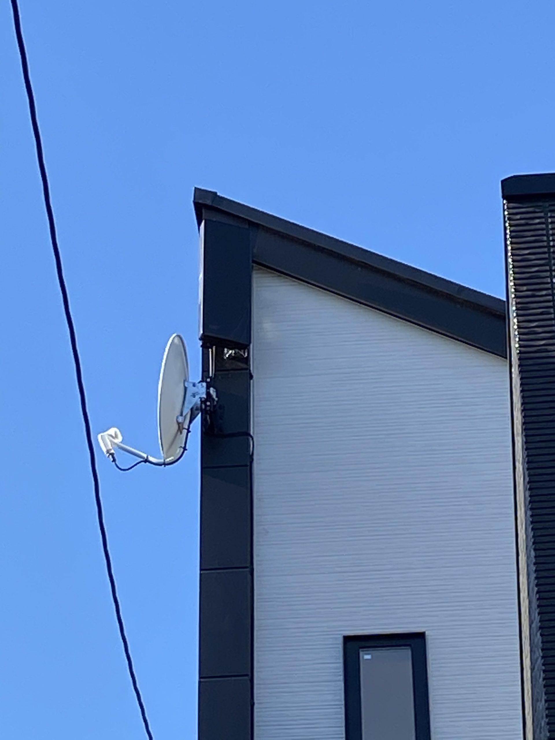 屋根の三角の角の下に白いBS/CSアンテナが設置してありました📡✨